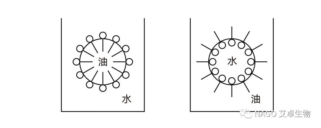兩種互不相溶的液相,如油相和水相,以微小粒子(液滴或液晶)分散在另一相中所形成的體系稱為乳狀液,也稱為乳化體。在乳狀液中以微小粒子或液滴形式存在的那一相稱為分散相,或內(nèi)相;而包圍在它外面的液體稱為分散介質(zhì),或外相、連續(xù)相。將水和油混合時(shí),能夠形成兩種類型乳狀液。一種是油分散在水中,油是分散相,水是分散介質(zhì),形成的是水包油(O/W)型乳狀液,相反形成的是油包水(W/O)型乳狀液。